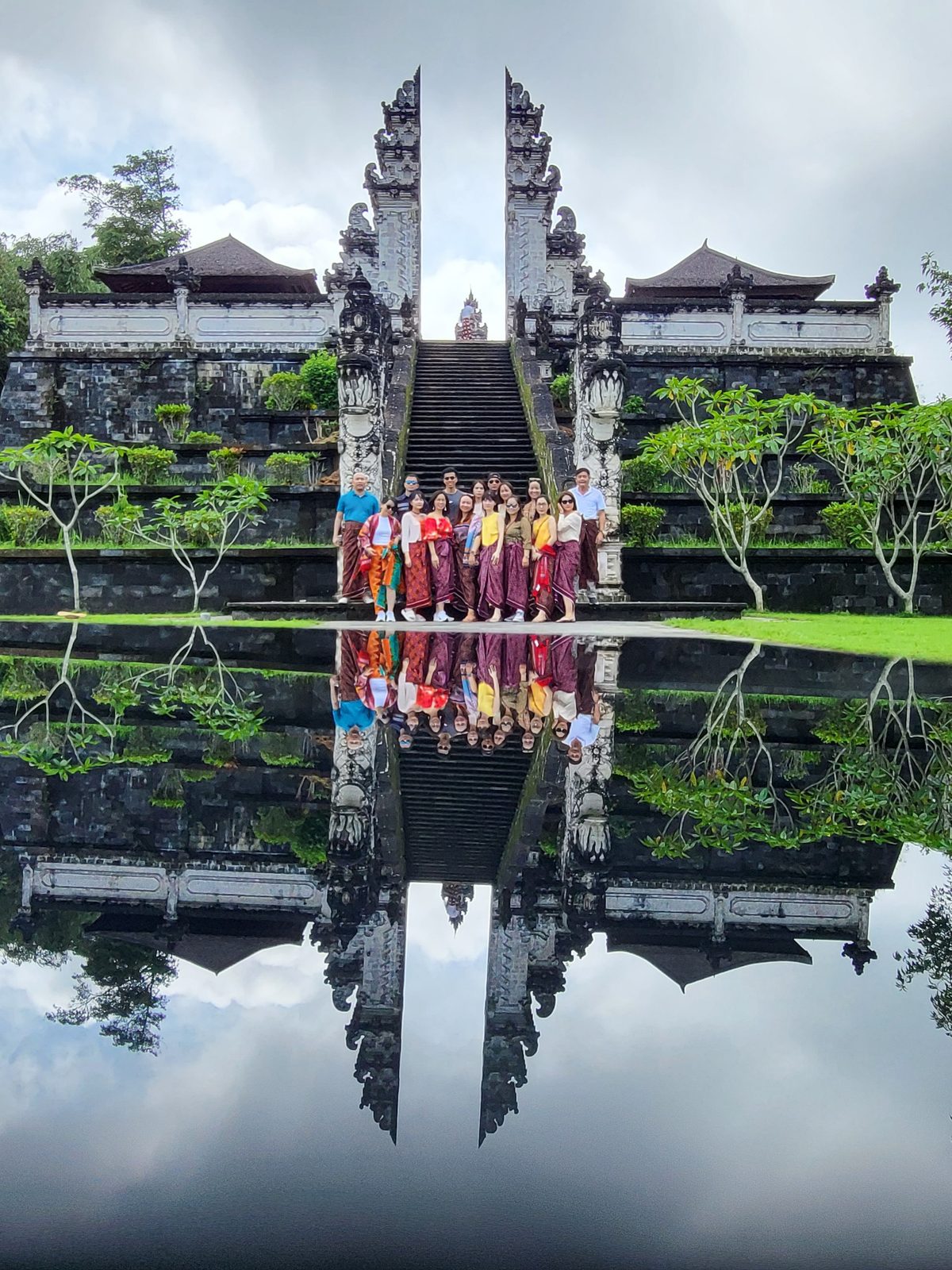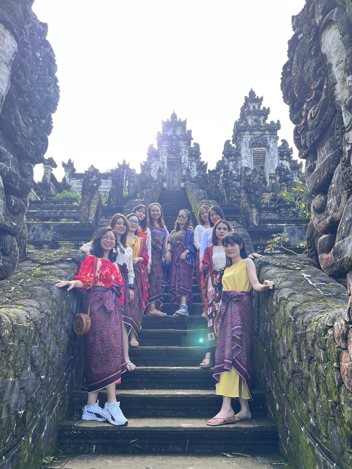 Trong hành trình khám phá Bali, đoàn đã được ghé thăm Đền Pura Lempuyang -một trong nhưng ngôi đền cổ xưa và có ý nghĩa tâm linh nhất tại quốc đảo Bali. Cảnh quan nơi đây tạo thành một bức ảnh độc nhất khi được ngắm nhìn từ công ngồi đền, cánh cổng đó được thế giới biết tới là “Cánh cổng tới thiên đường”. Bên cạnh đó, đoàn đã được đến thăm Đền suối thiên Tampak Siring- một ngôi đền rất linh thiêng, rất nhiều người theo đạo Hindu luôn mong ước có một lần được tới đây để được tắm mình qua 12 dòng chảy thiêng liêng cầu mong được thần linh ban phước, phù hộ.