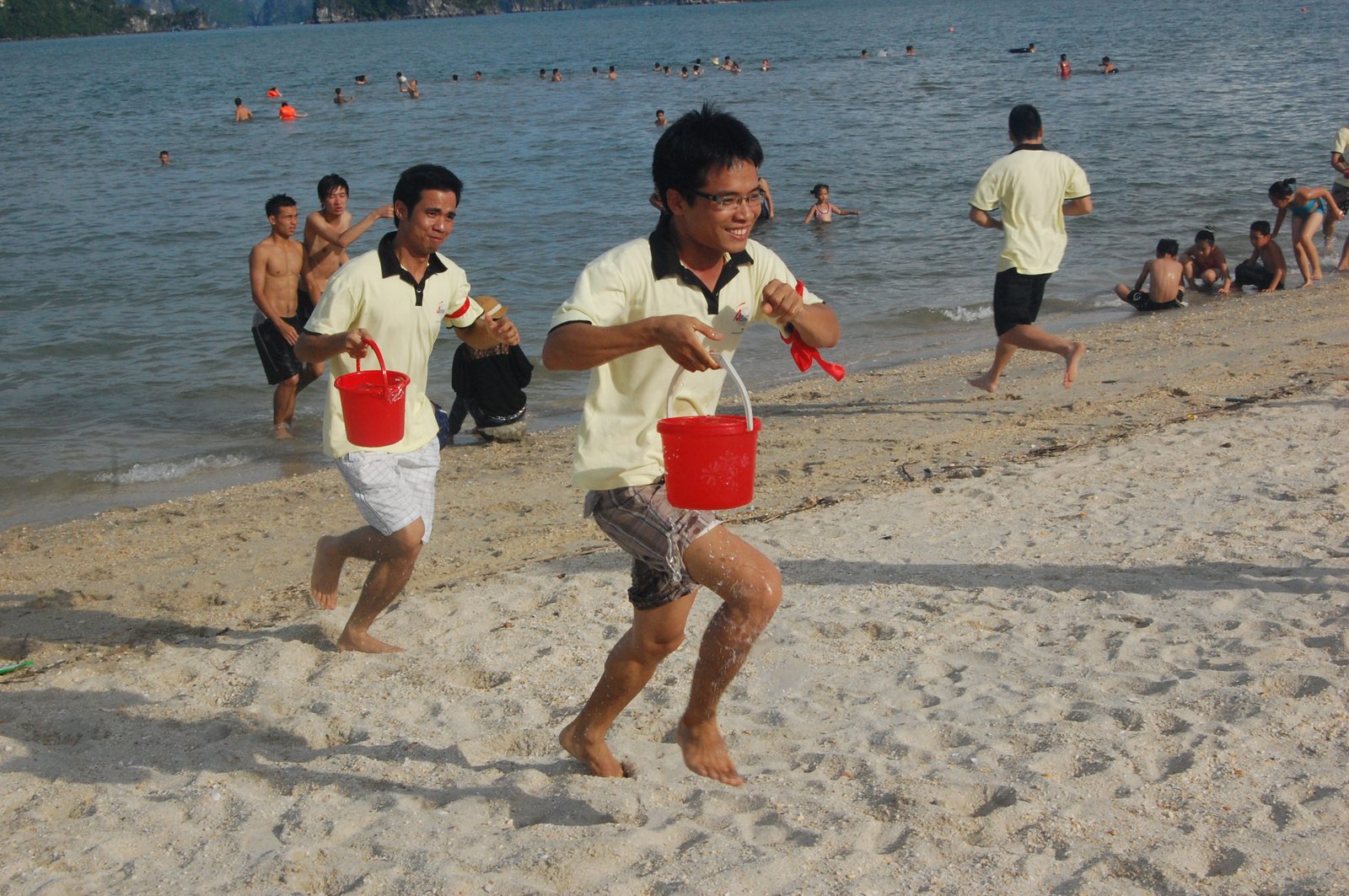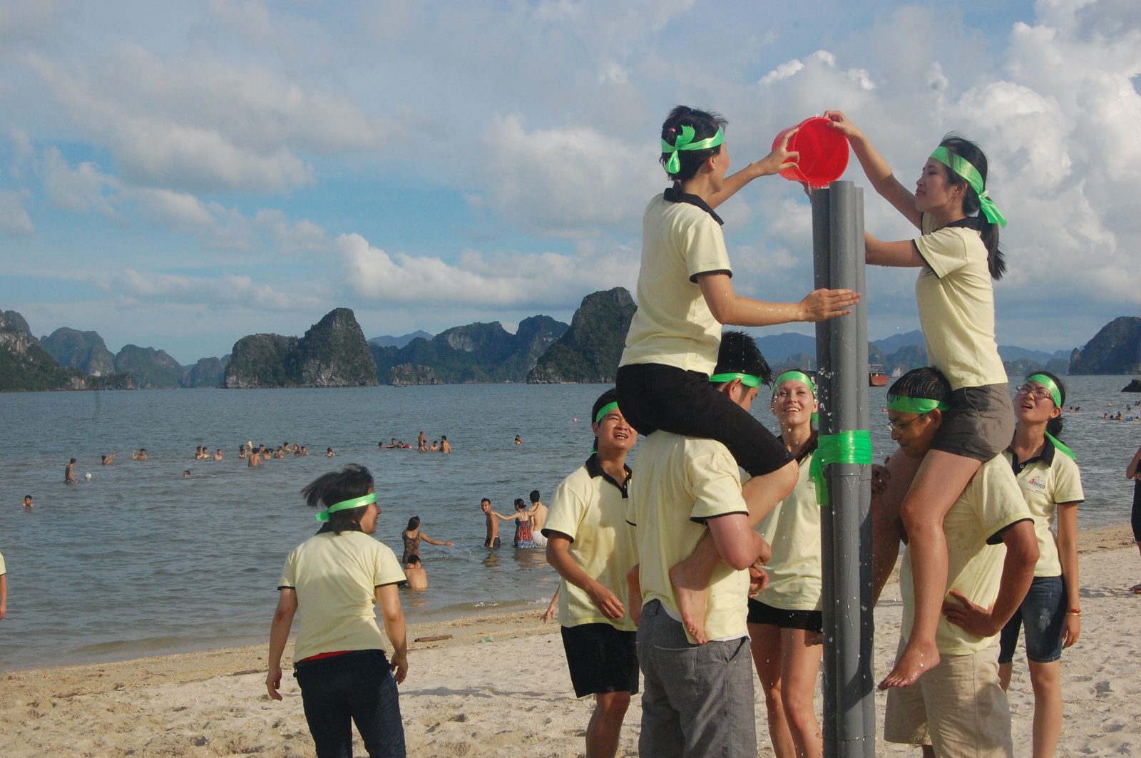 07h30: Chiếc xe 47 chỗ từ từ chuyển bánh đưa đại gia đình rời tòa nhà DG nơi Ashico đặt văn phòng trụ sở để đến với bãi biển Vân Đồn- một trong những bãi biển hoang sơ và đẹp nhất miền Bắc, nơi có biển xanh, cát trắng, có những cơn gió thiên nhiên mát lành. Với sự nhiệt tình của Hướng dẫn viên từ Công ty AC Pro, một công ty chuyên tổ chức các trò chơi kỹ năng và hoạt động xây dựng tinh thần tập thể, những bài hát, những câu chuyện vui, những trò chơi được tổ chức trên xe đã khiến cho quãng đường 150 km từ Hải Phòng đến Vân Đồn như được rút ngắn. Sau bữa trưa với các đặc sản địa phương tại một nhà hàng hải sản, 11h30 đoàn đã có mặt tại resort sinh thái ATI nằm ngay bên cạnh bãi biển Việt Mỹ I, bãi biển đẹp nhất ở khu vực Vân Đồn. Đây là khu resort sinh thái với phòng nghỉ là các khu nhà sàn gỗ mà cách bố trí và nội thất trong phòng mang phong cách gần gũi với thiên nhiên song vẫn đảm bảo tiện nghi cho khách lưu trú. Sau khi nhận phòng, chúng tôi có thời gian tự do tham quan khu resort và nghỉ ngơi đến 15h00, trước khi một chương trình đặc biệt sẽ diễn ra theo kế hoạch .