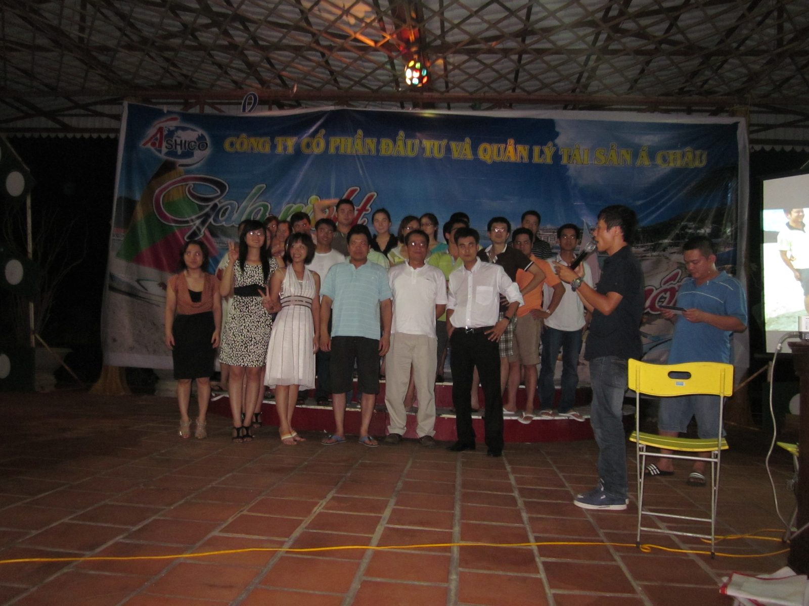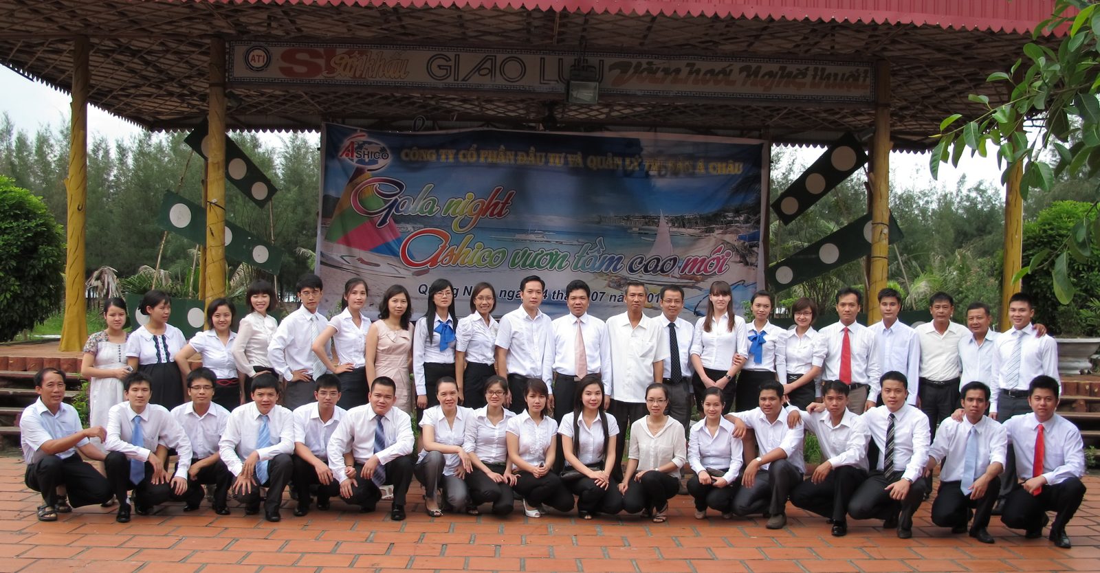 19h00:Tiếp nối chương trình Team building sôi nổi của buổi chiều là chương trình Gala night “Ashico- Vươn tầm cao mới”. Trong không gian khoáng đạt của thiên nhiên với núi non và sóng biển của khu resort ATI, đại gia đình Ashico đã có một buổi Gala rộn ràng, sôi động với rất nhiều những bài hát, điệu nhảy dự thi được các Ban, Văn phòng đại diện và các công ty con chuẩn bị công phu từ trước và cả các tiết mục ngẫu hứng. Cùng với các phần trò chơi hấp dẫn do Công ty AC Pro tổ chức và sự nhiệt tình tham gia đầy tính sáng tạo của toàn thể các thành viên, đêm Gala là một ấn tượng không thể phai trong lòng các thành viên đại gia đình Ashico và cả các du khách cũng như các nhân viên của khu resort ATI.