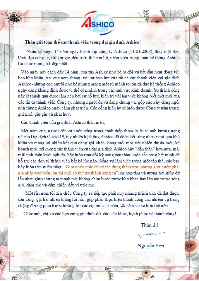 CHÀO MỪNG ĐẾN VỚI ASHICO